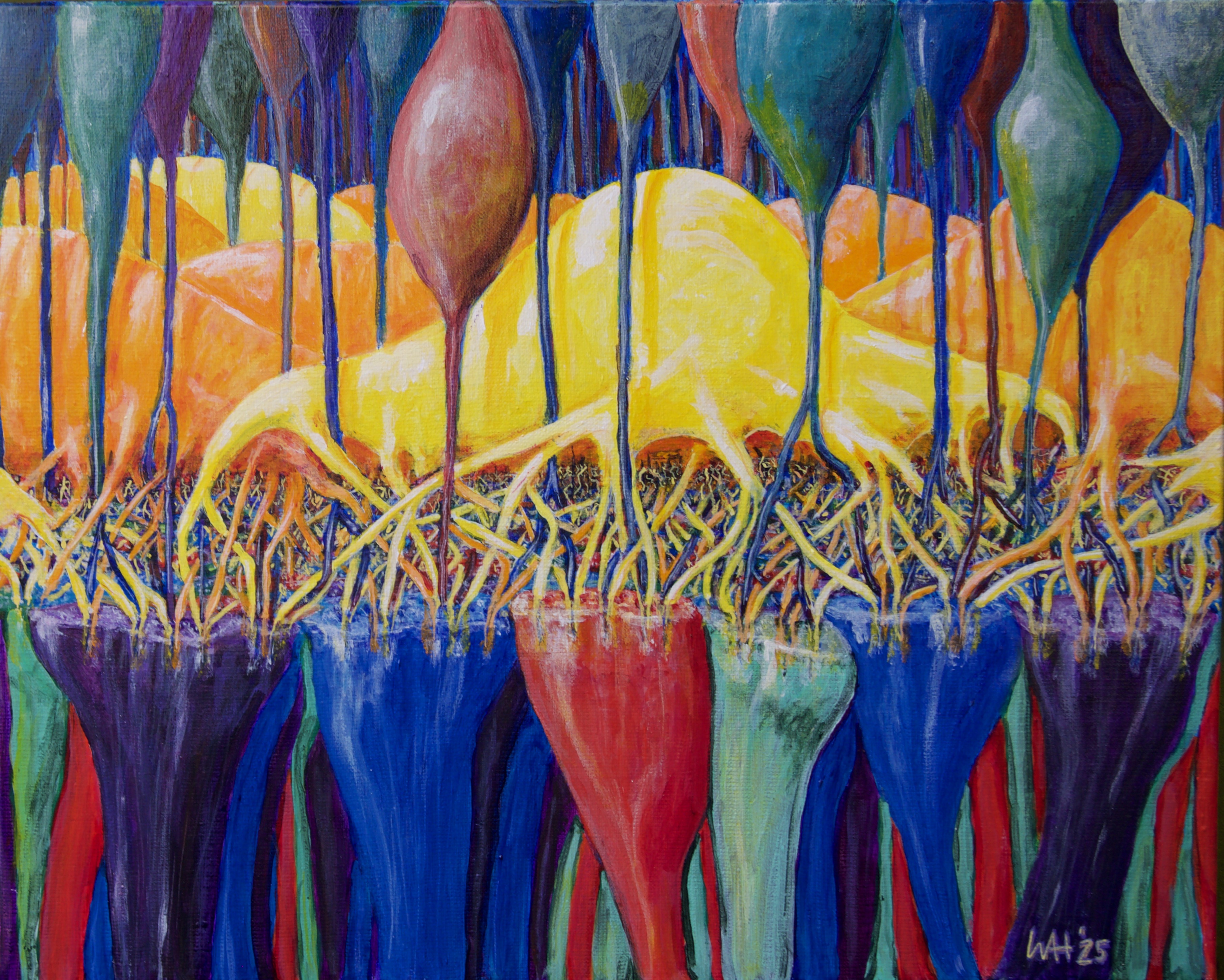 This digital artwork transforms the bronchial tree into a living grove. With bronchi resembling rugged trunks and alveoli forming a delicate canopy, each branch breathes life. Originating from a hand-drawn sketch, this piece was digitally enhanced, blending art and anatomy to capture the lungs' hidden vitality. |