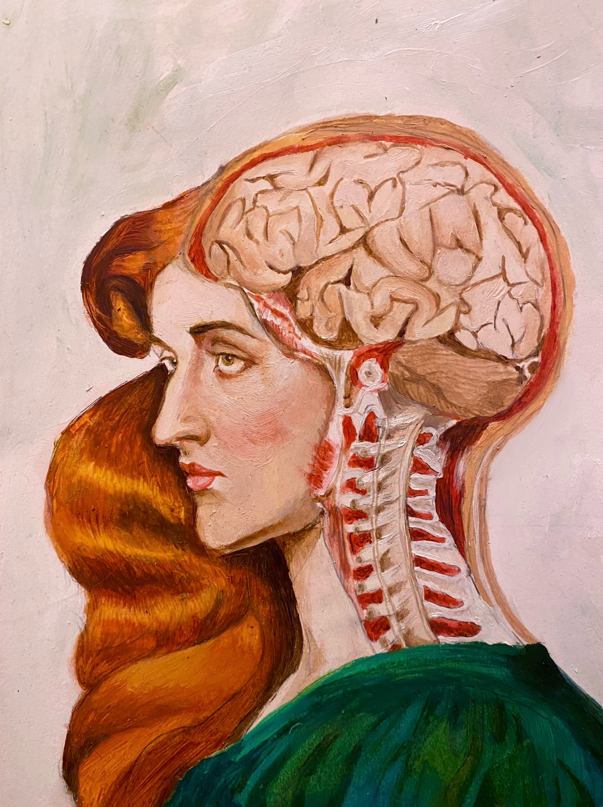 A painting combining my two favourite elements: the aesthetics of neuroanatomy illustrations and the romantic style of Dante Gabriel Rossetti. Oil on canvas. |